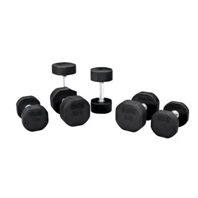 The Escape Urethane Dumbbell 1-10KG Set also offers a unique design with a permanently bonded steelhead and dual-lock construction. Its calculated transition from a round to an octagonal shape offers anti-roll benefits, making it an innovative addition to any facility.
