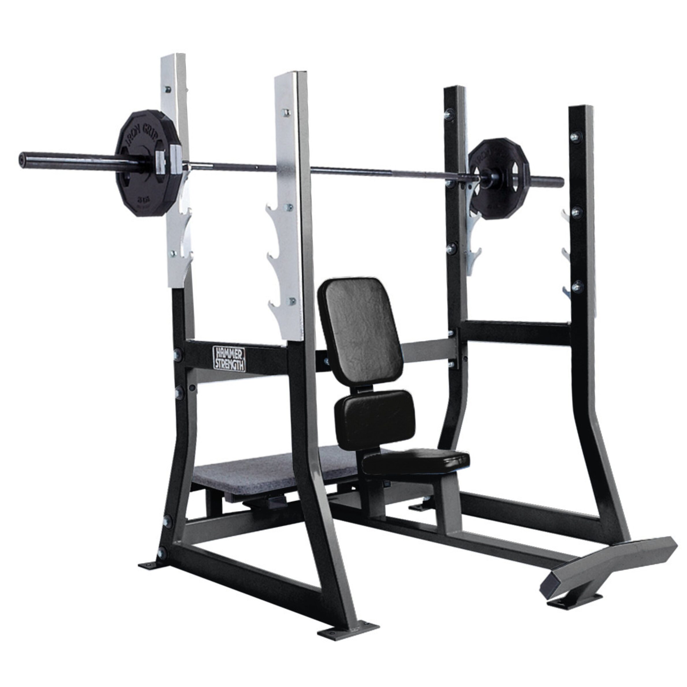 The Olympic Military Bench offers an Olympic style military bench press with the same high-grade durability and quality that comes with Hammer Strength benches and racks.