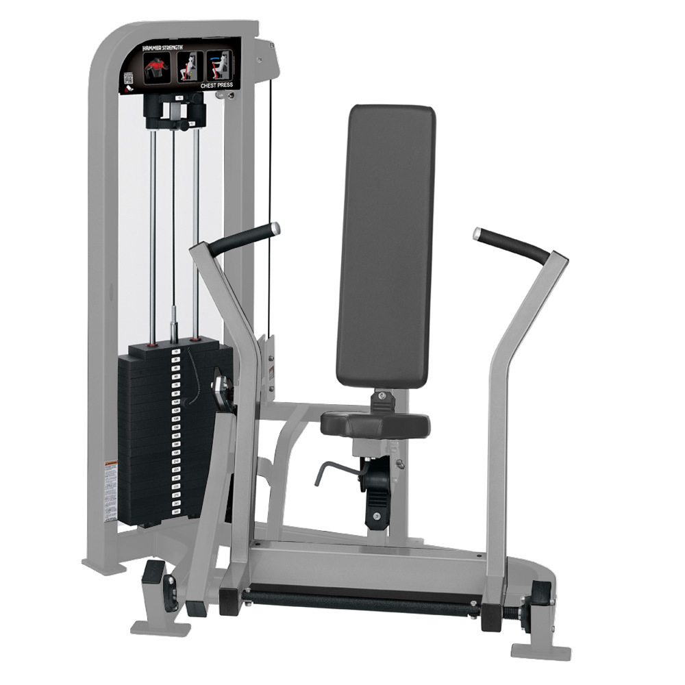 The Hammer Strength Select Chest Press is a fundamental part of the strength training progression. The pressing arm adjusts in five positions for multiple ranges of motion. The 22 pieces in the Hammer Strength Select line provide an inviting introduction to Hammer Strength equipment.
