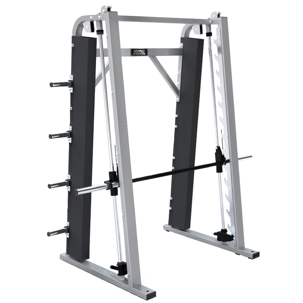 The Smith Machine bar path follows a seven-degree angle, which is the free weight motion of Olympic lifting — to give you the same workout environment as Olympic athletes.